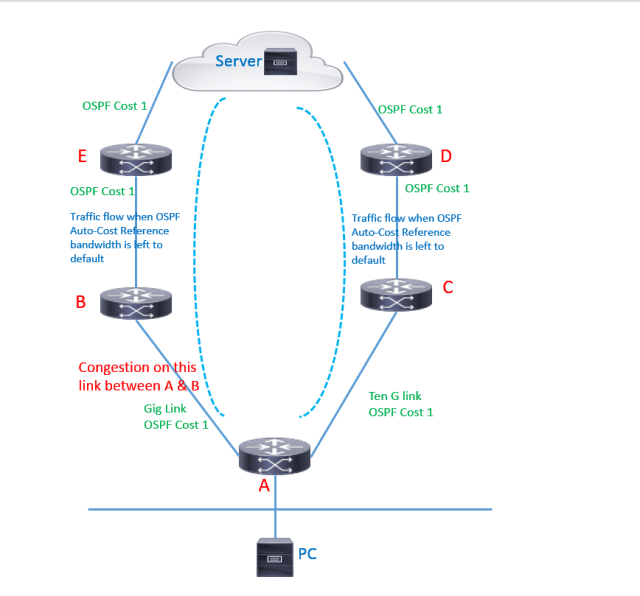 But OSPF by default is unable to differentiate the cost properly for a device that has both TenG and Gig interfaces.