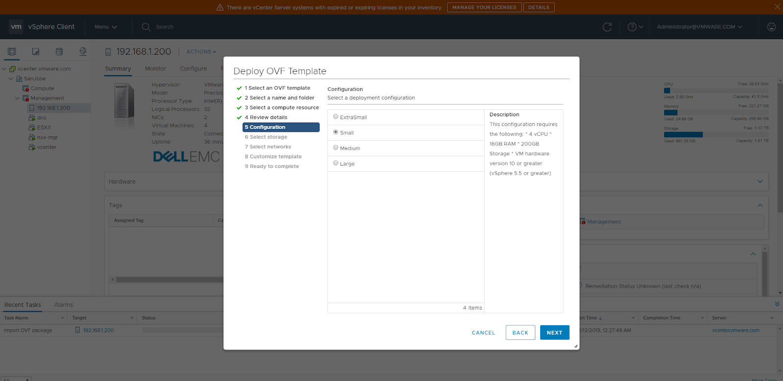 Note:NSX Manager Small VM is suitable for lab and proof-of-concept deployments.