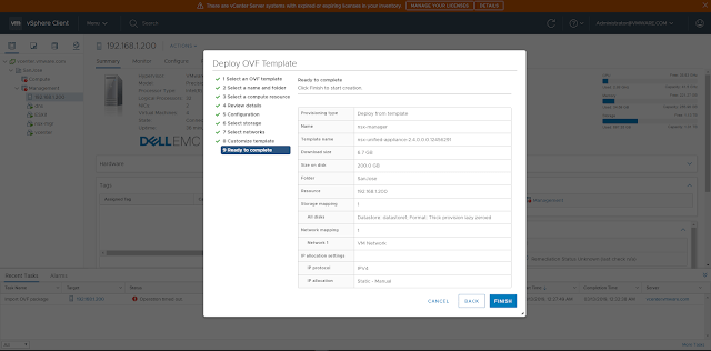 Specify appropriate name, cluster, host, datastore and click on Finish