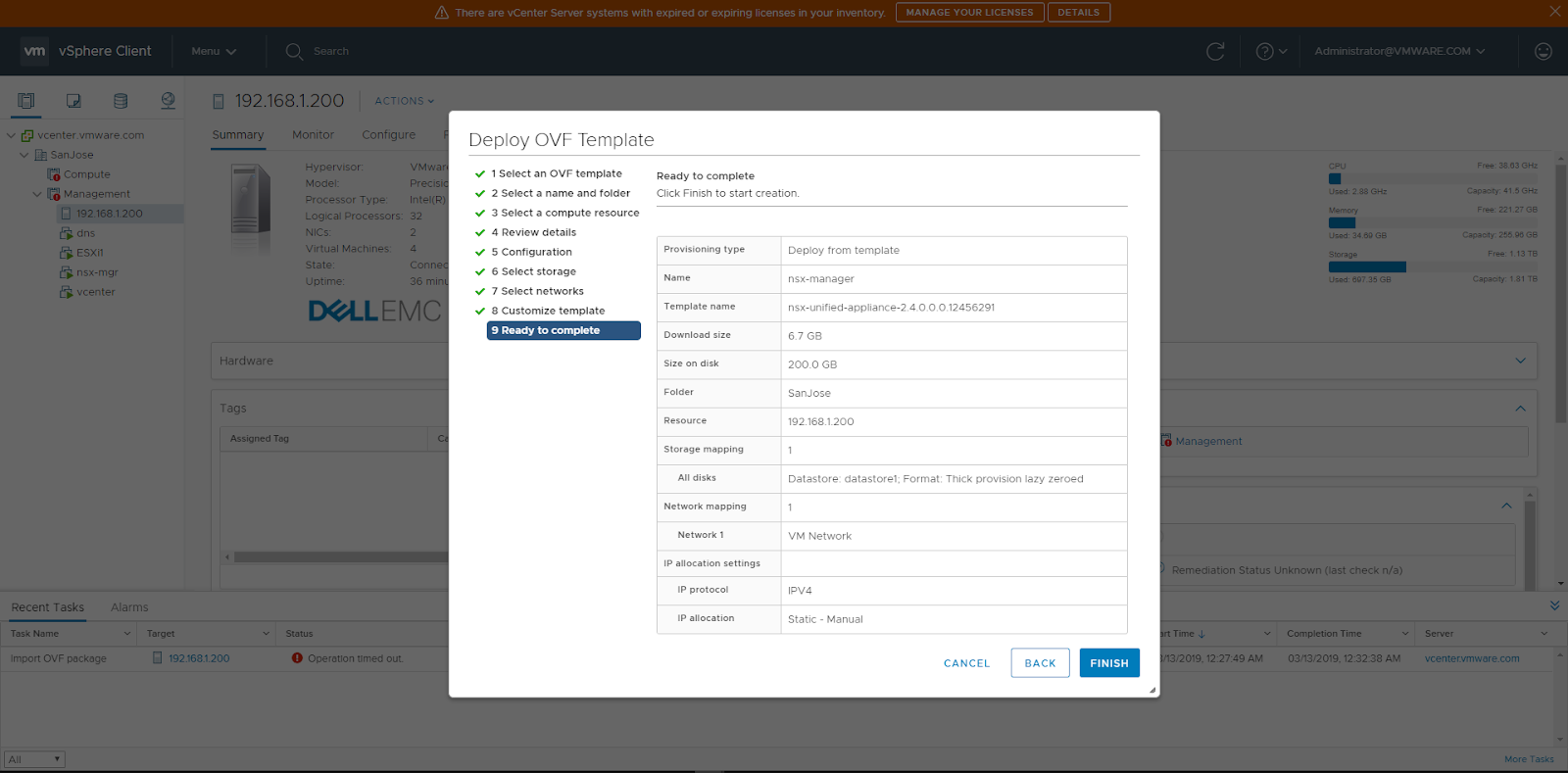 The first thing to do while installing NSX-T 2.4 unified appliance is to download the appropriate OVF file from VMware portal.