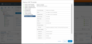 Specify the hostname, passwords, management IP, subnet mask and gateway, DNS server IP, NTP server IP, domain search list.