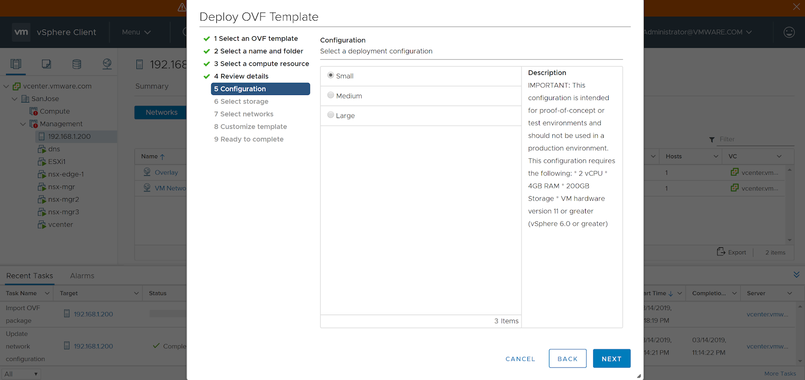 The NSX Edge Small VM appliance size is suitable for lab and proof-of-concept deployments.