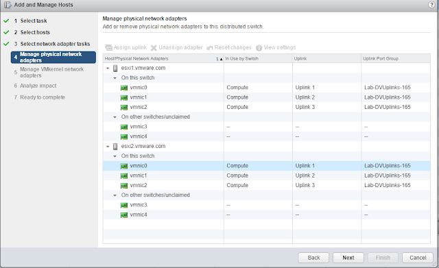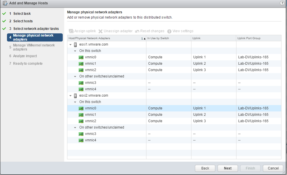 | Unassigned vmnics on the compute hosts |