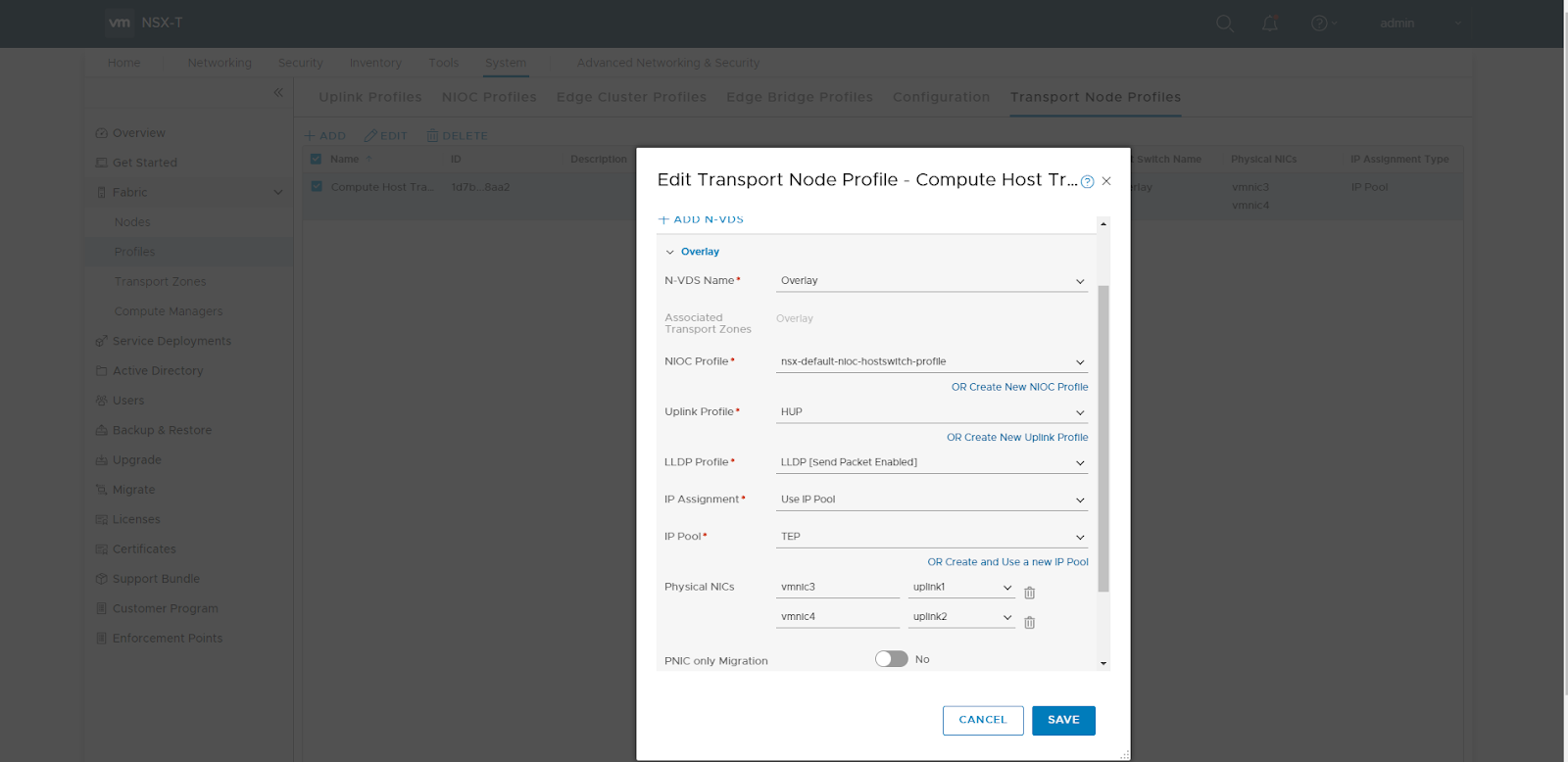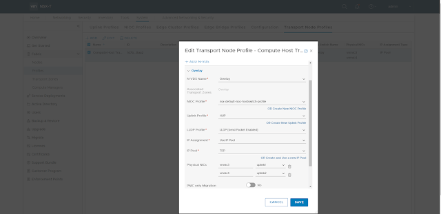 Next, we will create a Transport Node Profile which will be used for preparing the compute hosts.