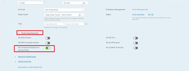 As shown above, we are redistributing connected networks on Tier 1 Gateway