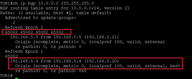 There is no explicit configuration done on the Tier 0 Gateway to achieve this AS path prepend.