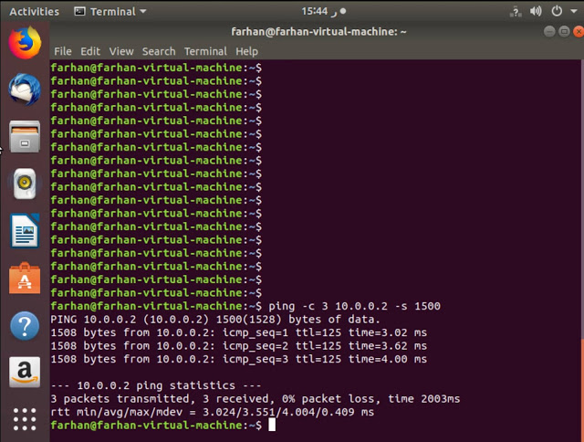 Ensure that you are able to ping with default VM MTU of 1500 bytes.