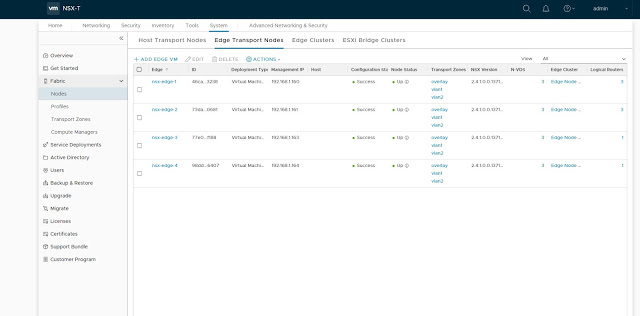 Edge node clusters are created, two edge node clusters are defined. Each edge node cluster effectively utilizes two edge node VMs.