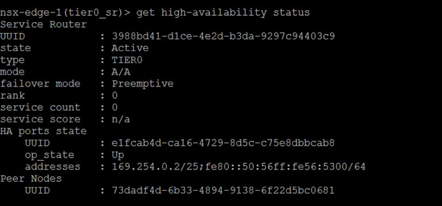 Check the high availability status of this Tier 0 SR corresponding to Tier 0 Gateway Left and you will find that it is Active-Active