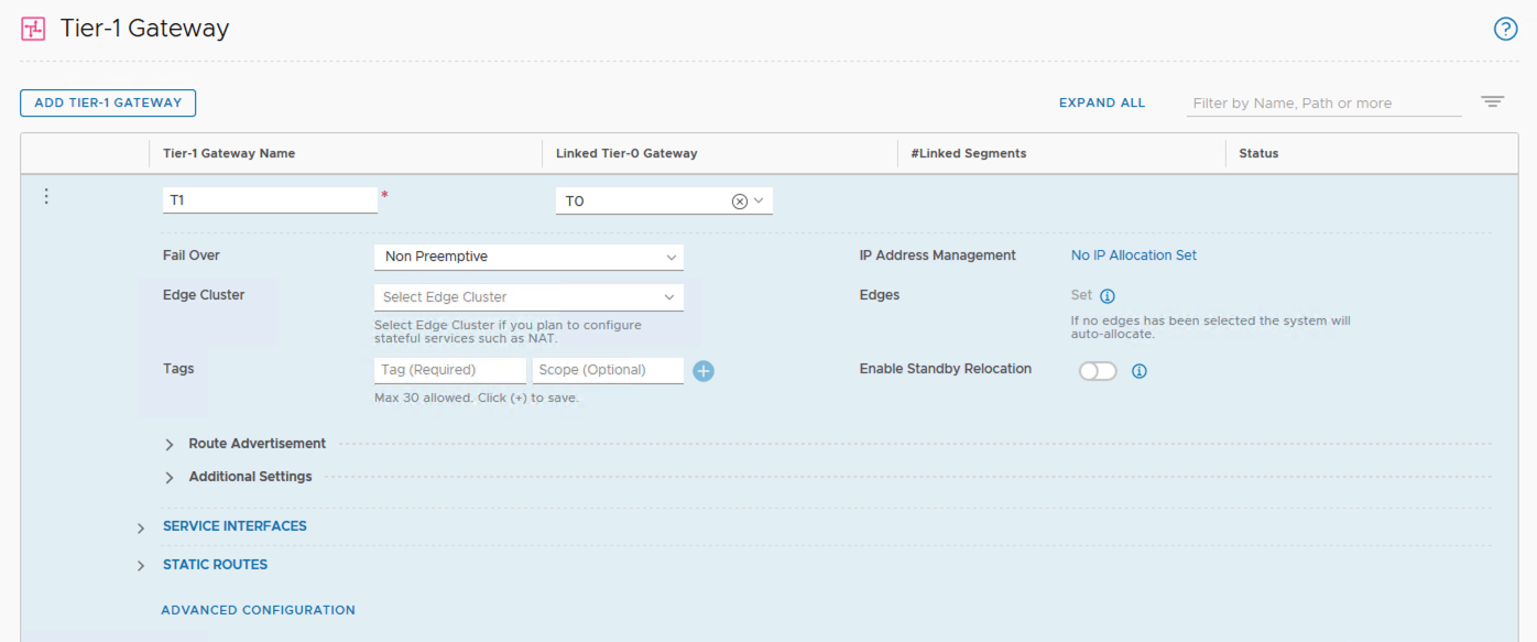 As you can see, edge cluster is associated with this Tier 1 Gateway.