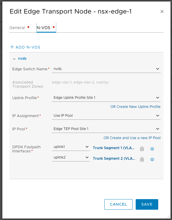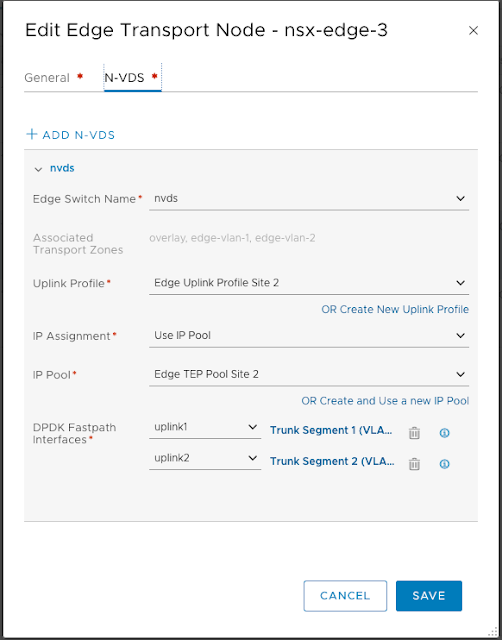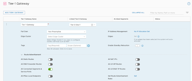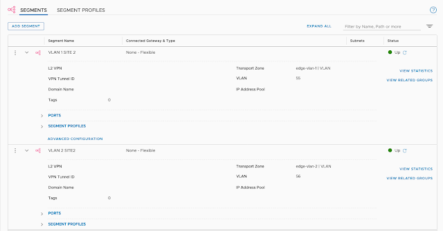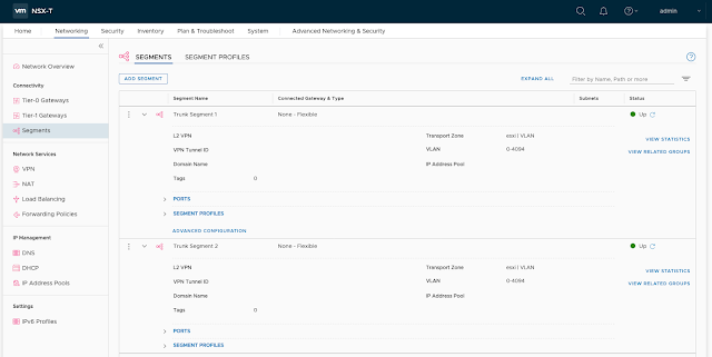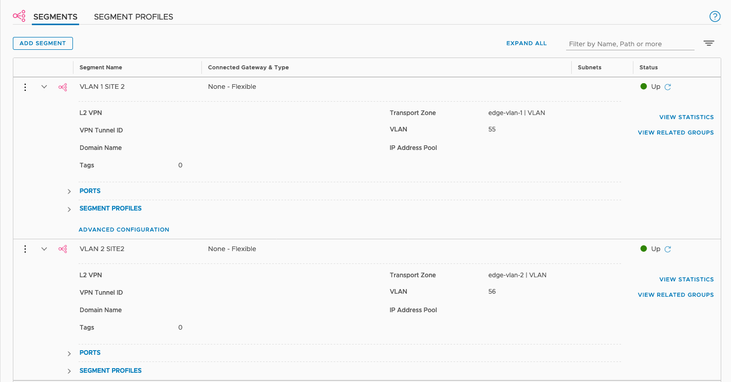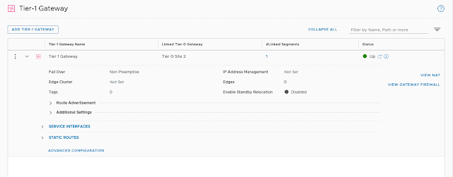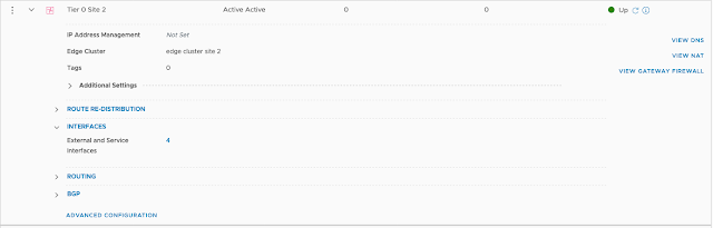Likewise two more segments are required for Tier 0 Gateway in Site 2.