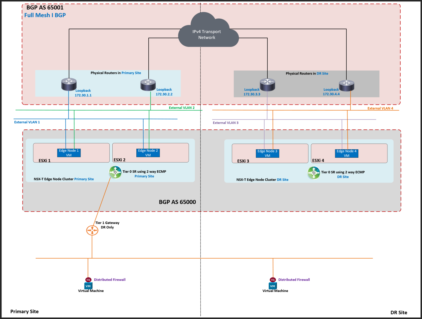 BGP AS number 65000 is used within NSX and BGP AS number 65001 is used in the physical network.