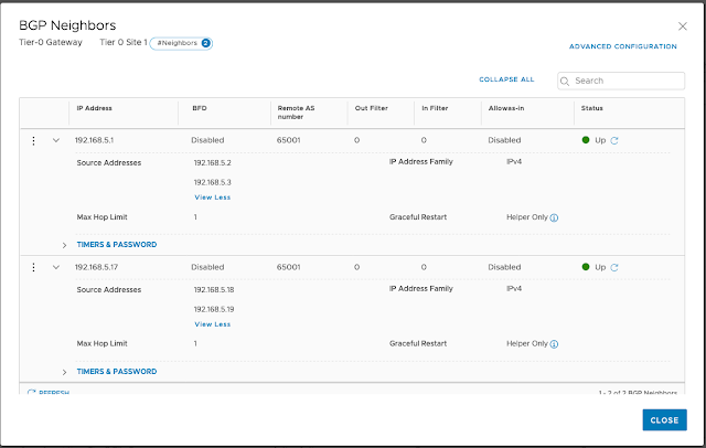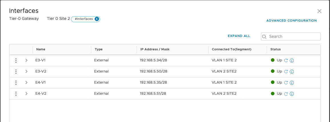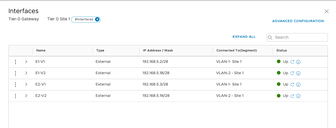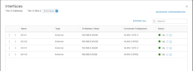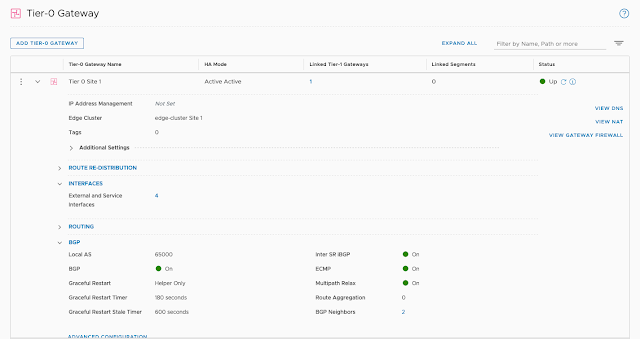 Layer 3 interfaces are then created as above on each of the Tier 0 Gateway.
