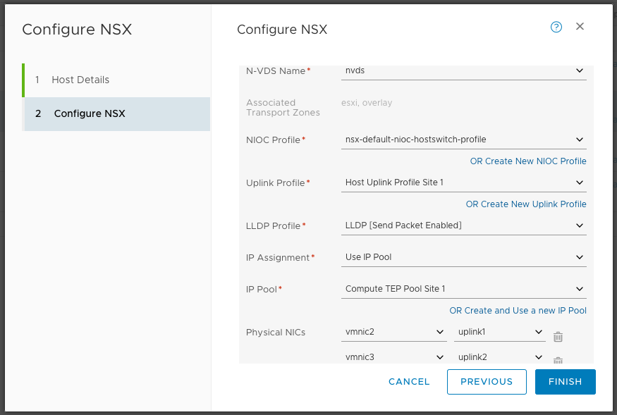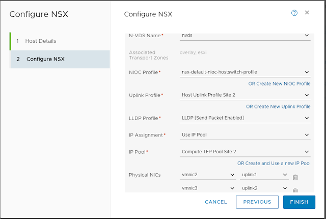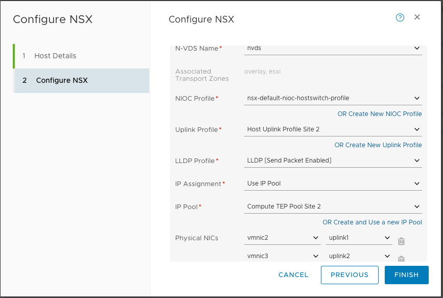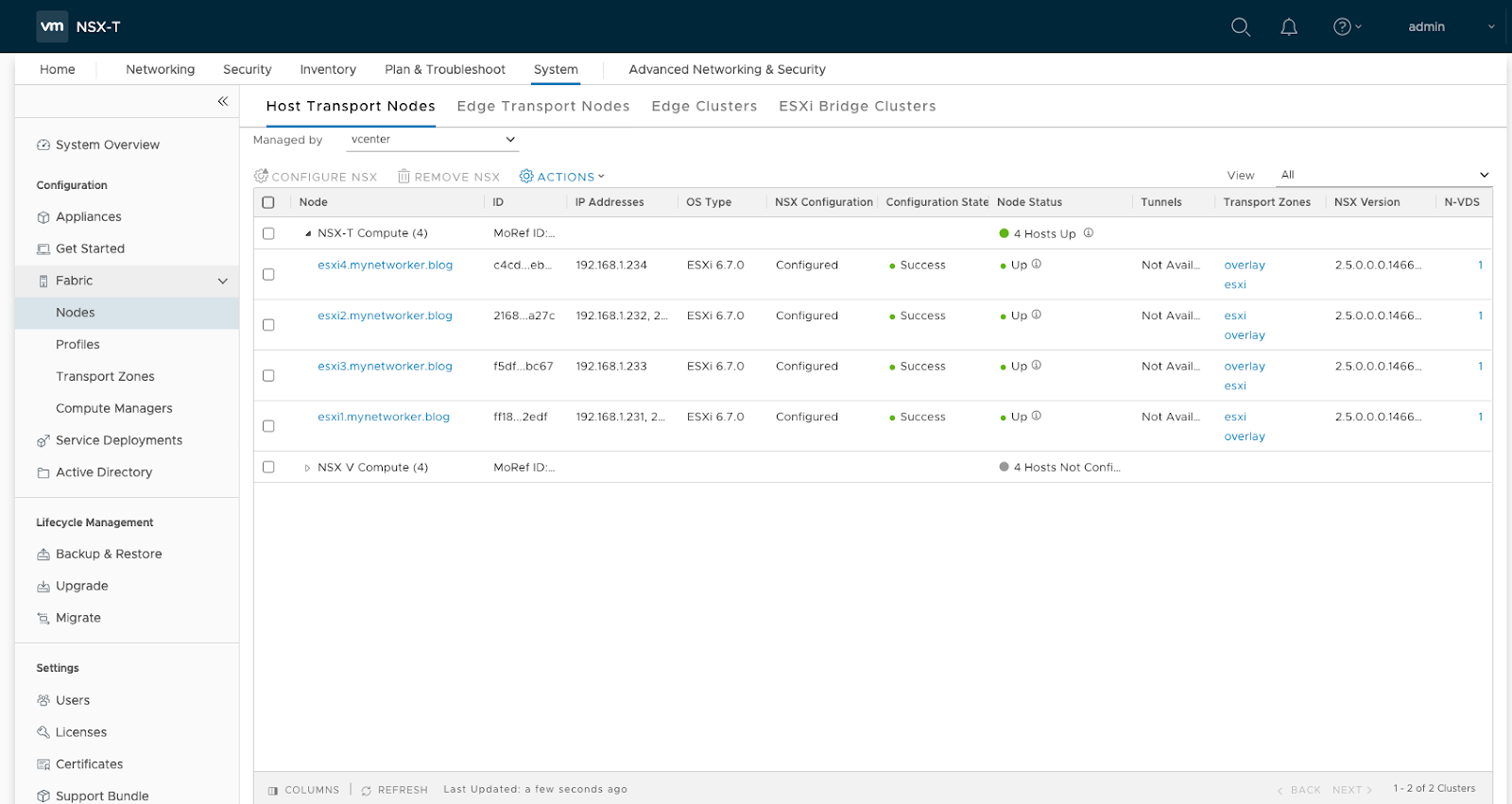 – Hosts have transport zone ESXi as VLAN backed transport zone and Overlay transport zone associated.