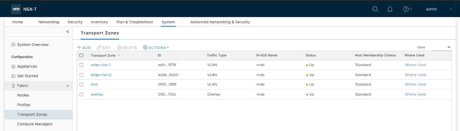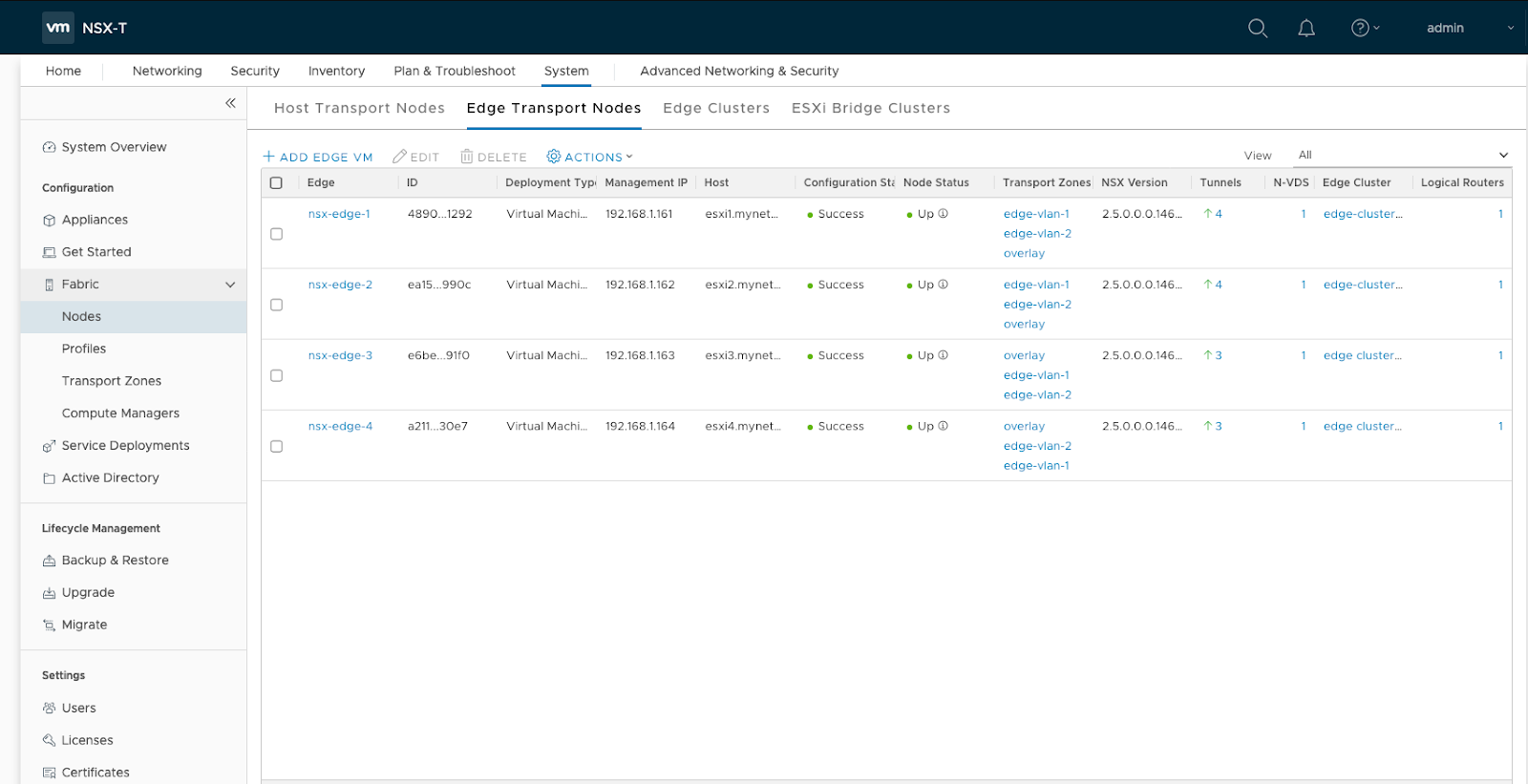 – Edges have Overlay transport zones in addition to VLAN backed transport zones.