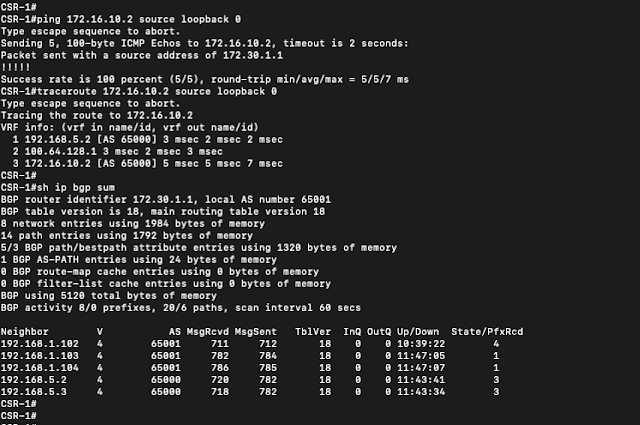 Now verify the traffic flow by sourcing traffic from loopback network on physical router of Site 2.
