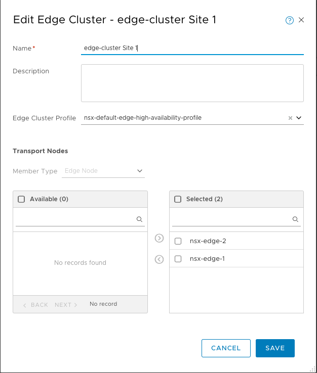 Likewise, Tier 0 Gateway of Site 2 uses the edge cluster of Site 2.