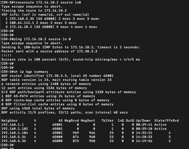 Full mesh i BGP is used between the physical routers in this lab setup.