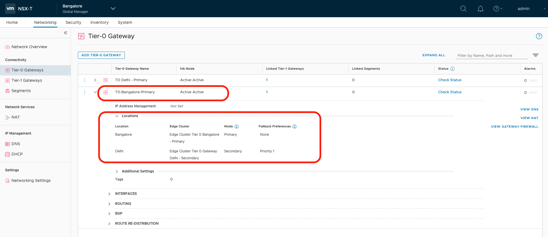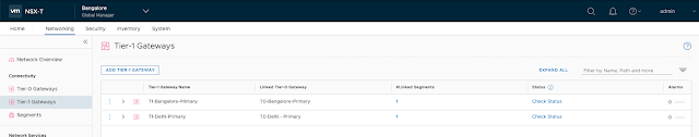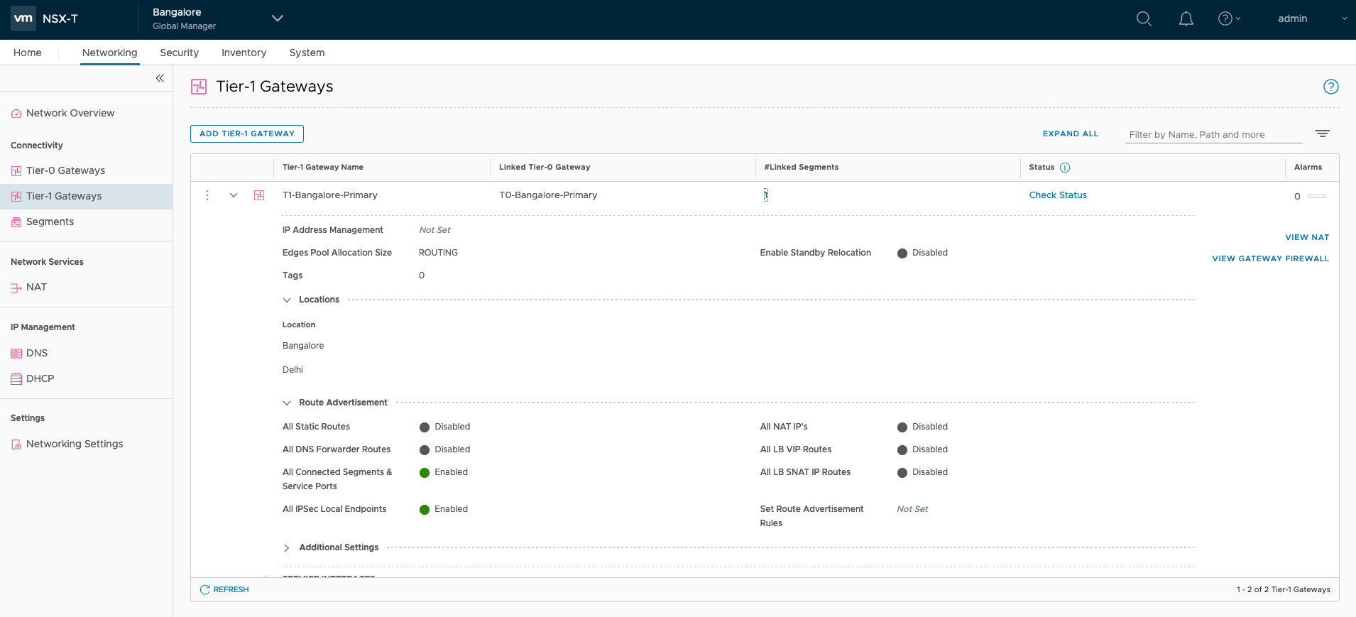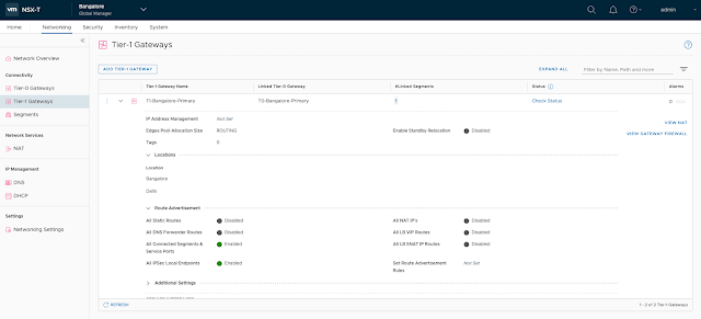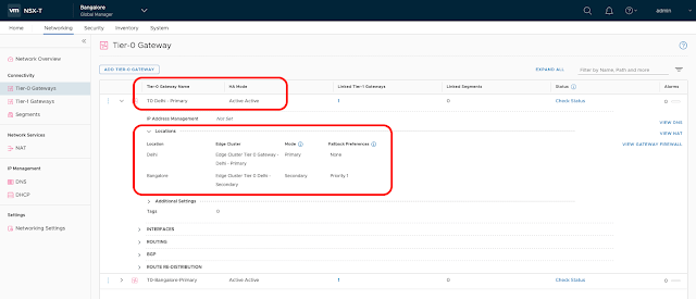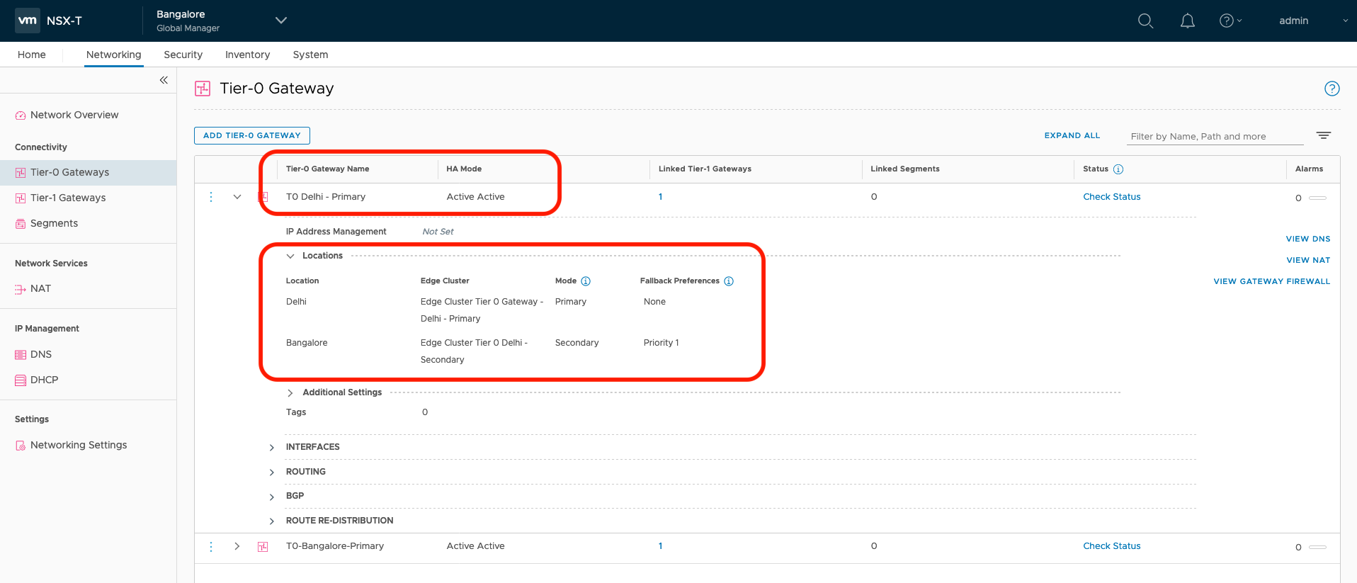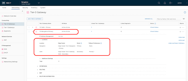 Likewise Tier 0 Gateway is created with Delhi as primary location & Bangalore as secondary location.