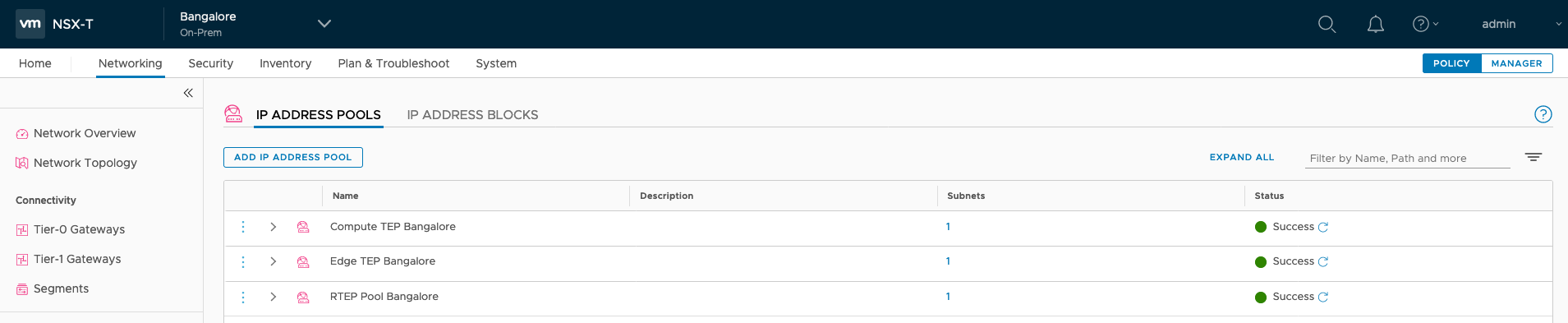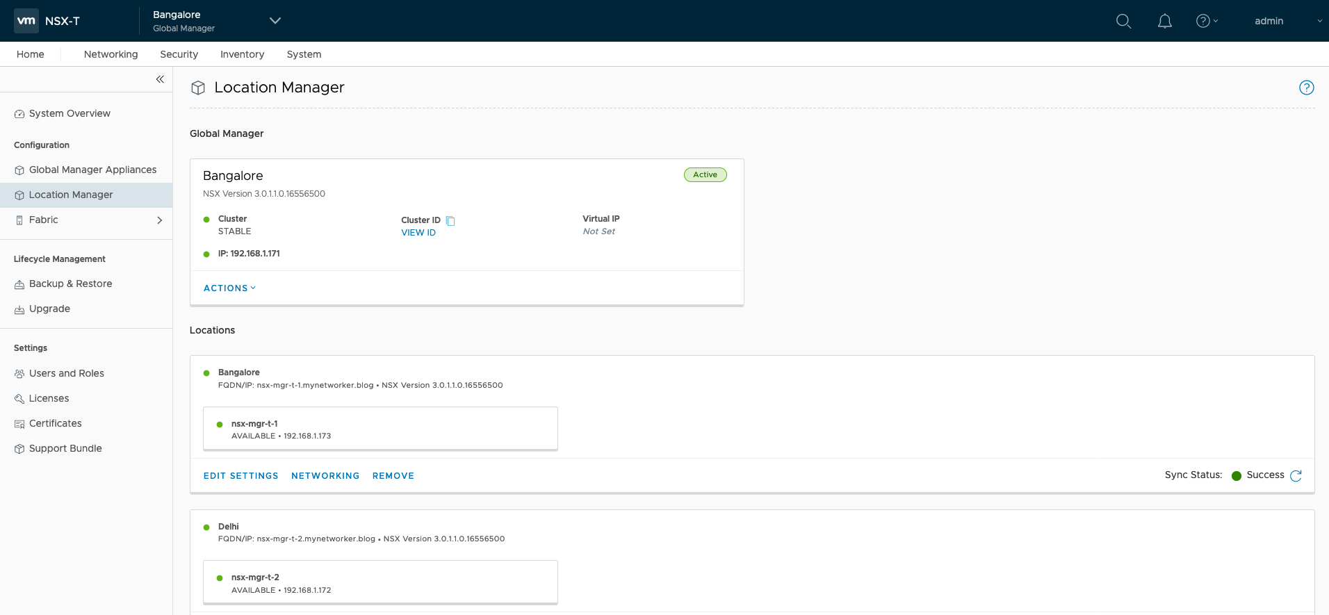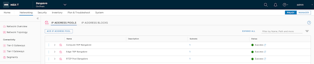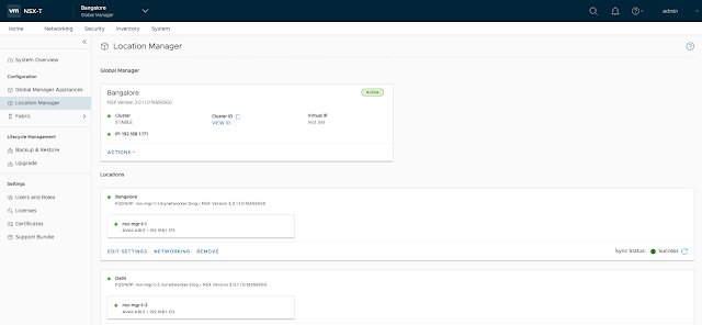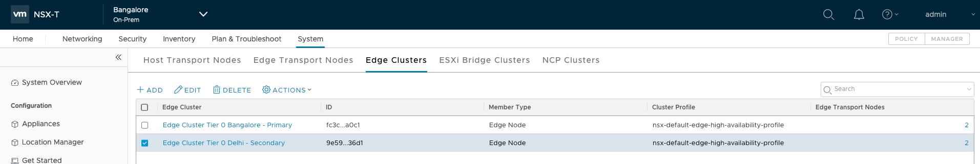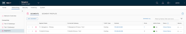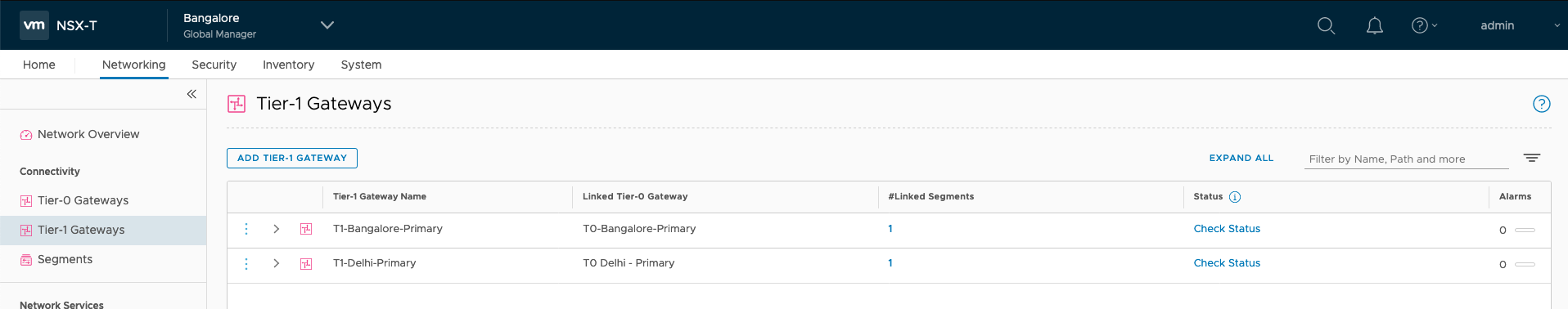 Likewise Tier 0 Gateway is created with Delhi as primary location & Bangalore as secondary location.
