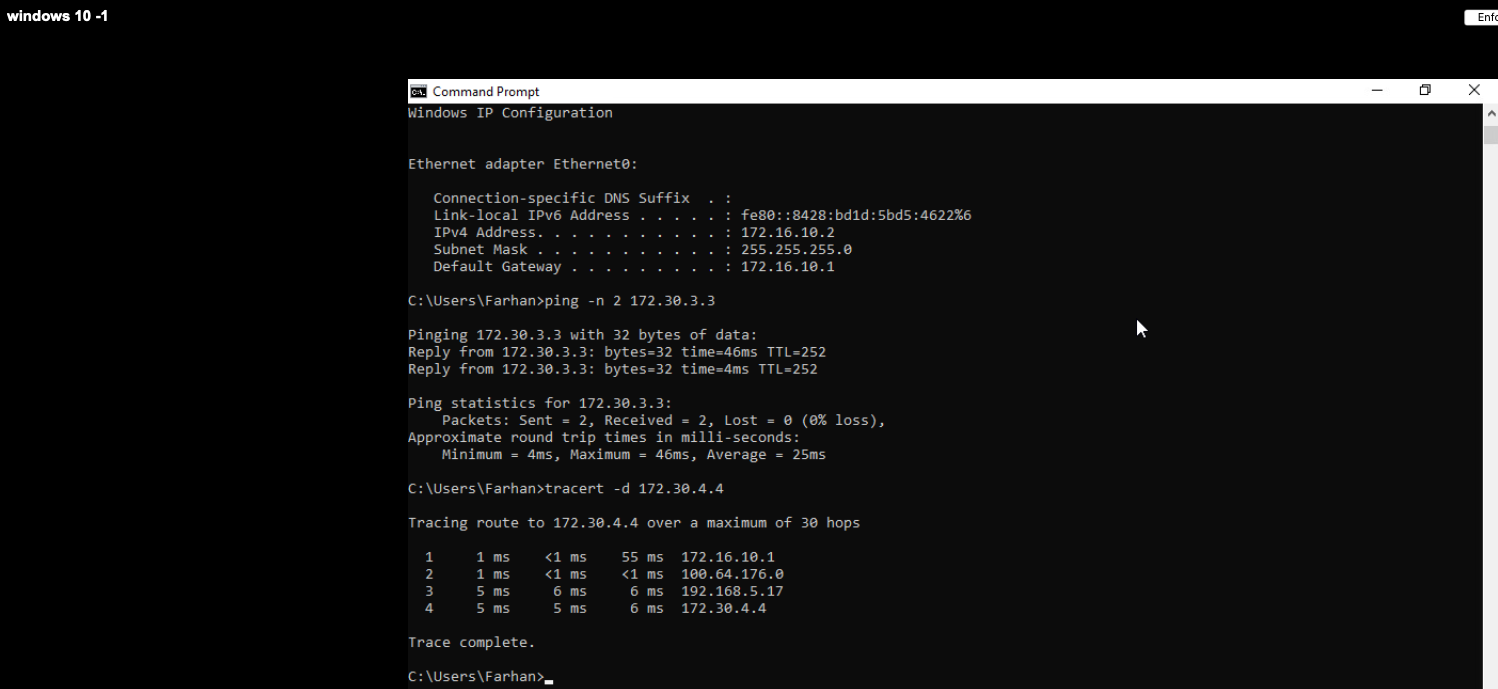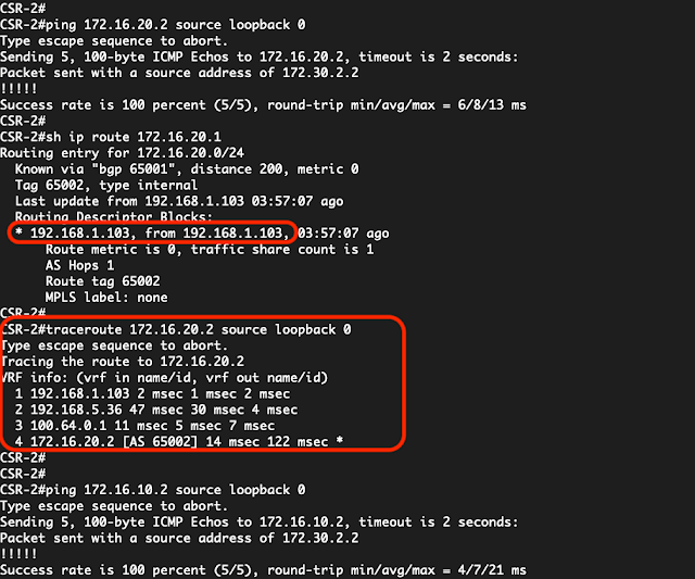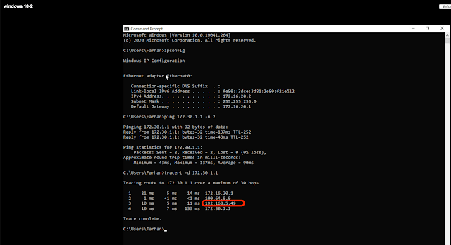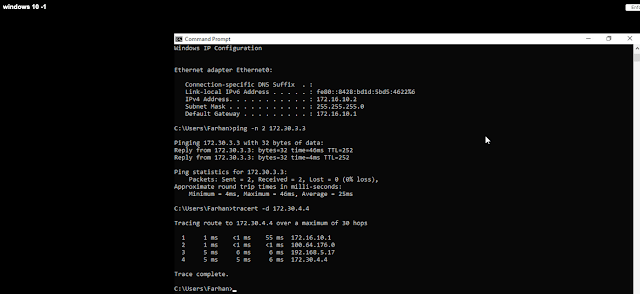 | Trace from VM in Delhi to loopback of physical router 1 in Bangalore goes through physical router of Delhi |