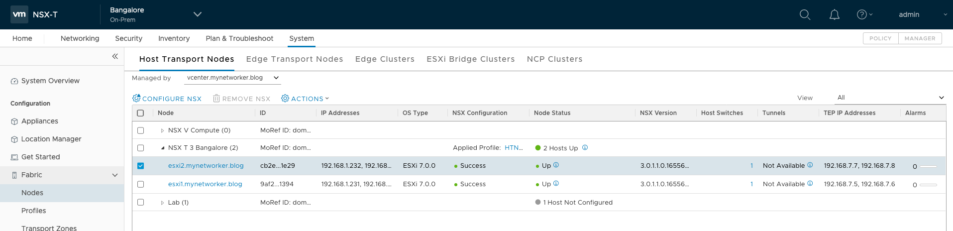 3. Hosts in each site have been prepared as hosts transport nodes.