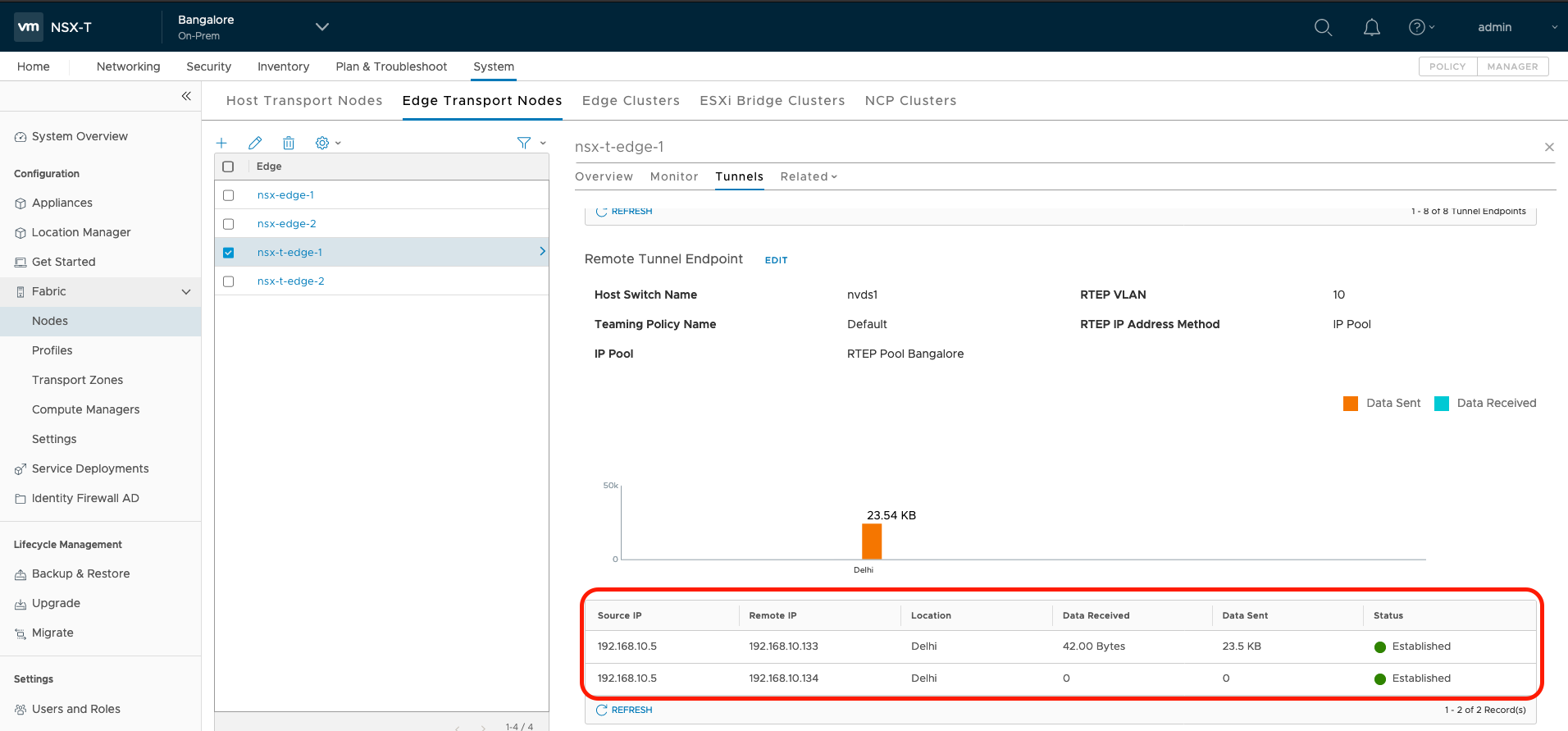 6. Four edges correspond to Tier 0 Gateway Bangalore which has Bangalore as Primary location and Delhi as secondary location.