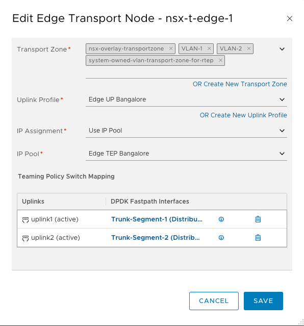 VLAN backed trunk segments are created on hosts’ VDS for uplink connectivity of edge.