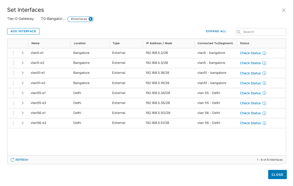 | L3 interfaces on Tier 0 Gateway Bangalore |