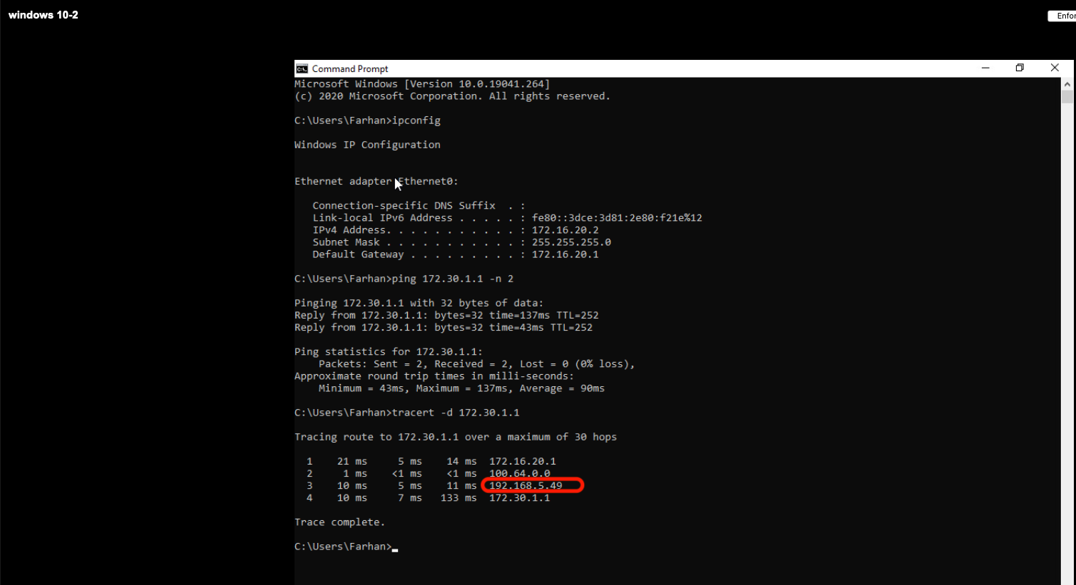 | Trace from loopback of second physical router in Delhi to VM behind Tier 1 Gateway Bangalore goes through physical router 1 of Bangalore location |