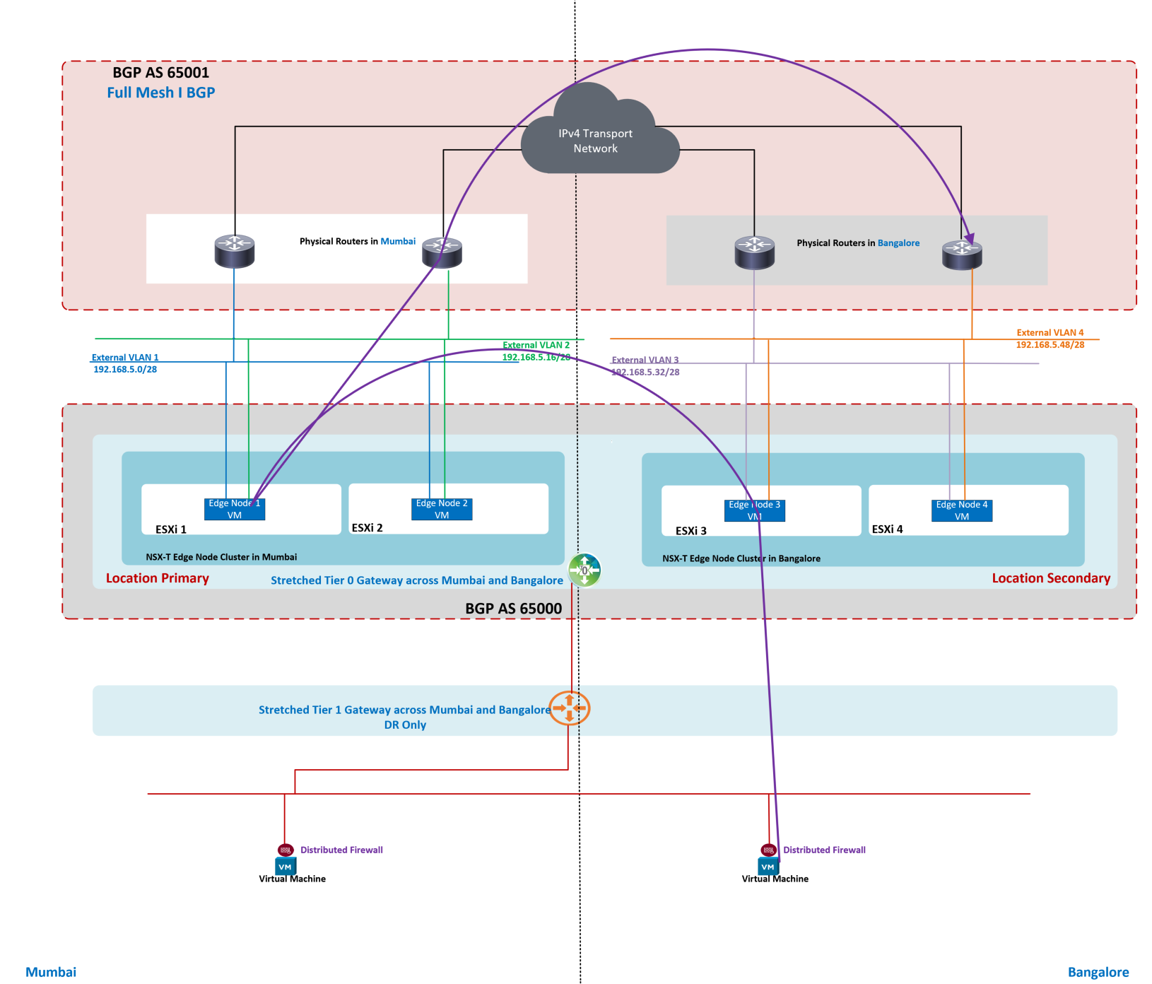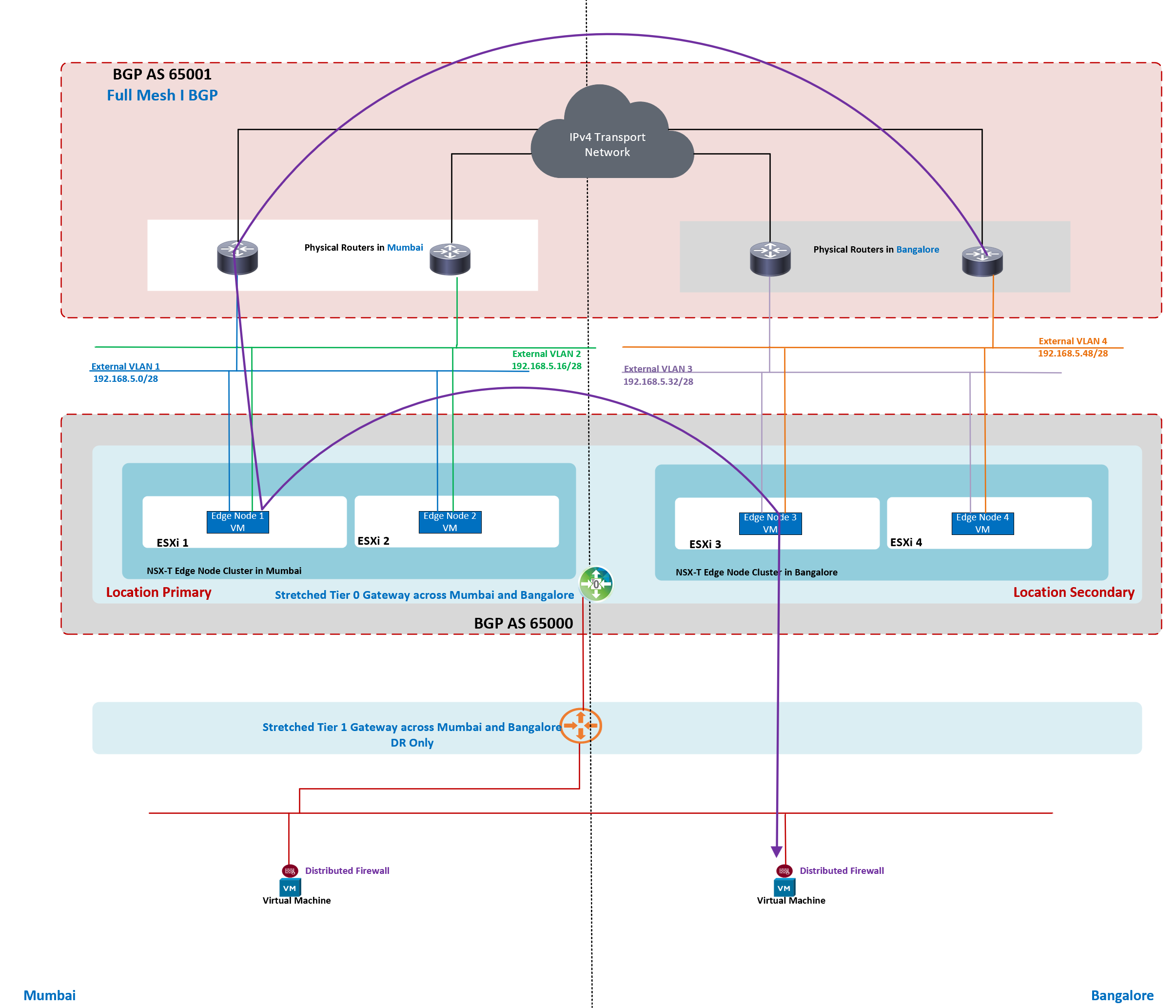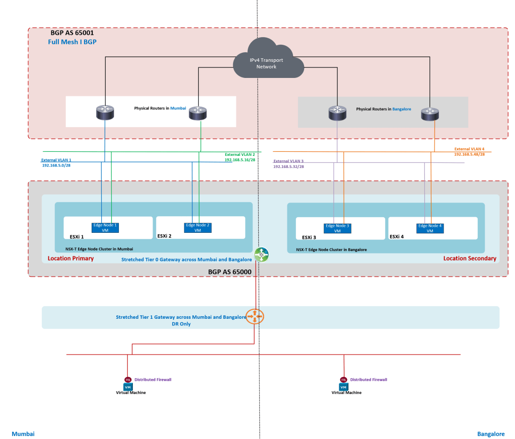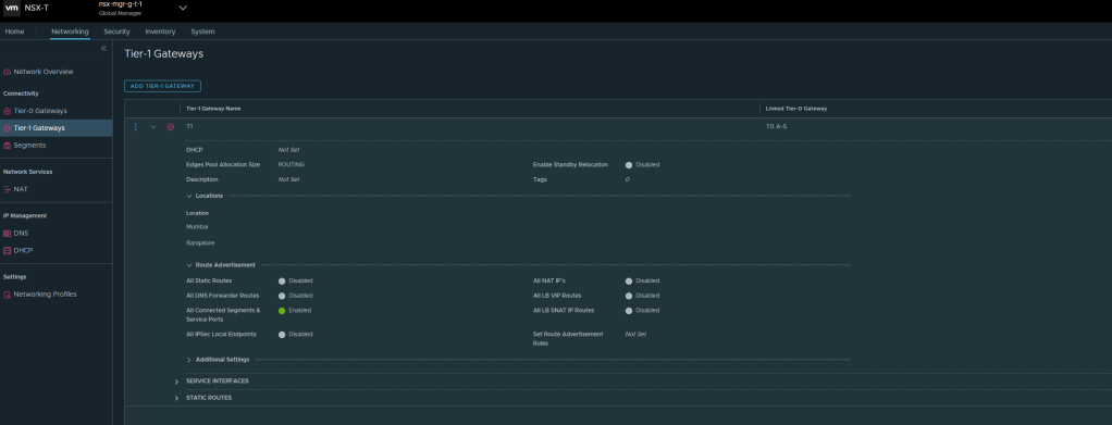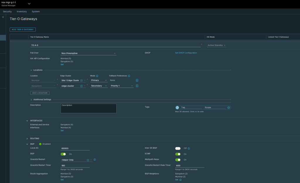 - Stretched Tier 0 Gateway has Mumbai as Primary Location and Bangalore as Secondary Location