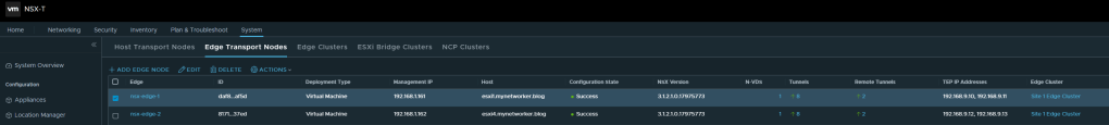In this lab setup, I have prepared NSX Fabric in both locations. There is no standby Global Manager in this lab. For production setup, it is a must to deploy standby Global Manager.