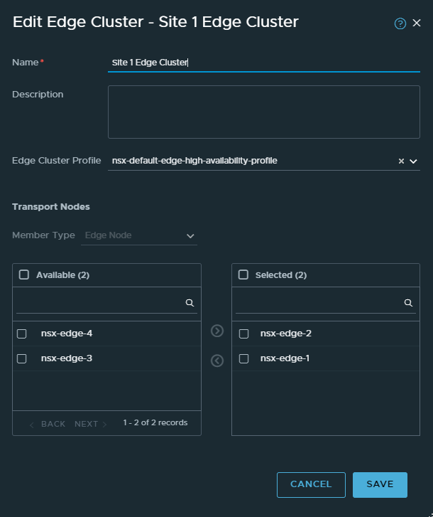 Two edges have been deployed and edge cluster is created out of those edges.