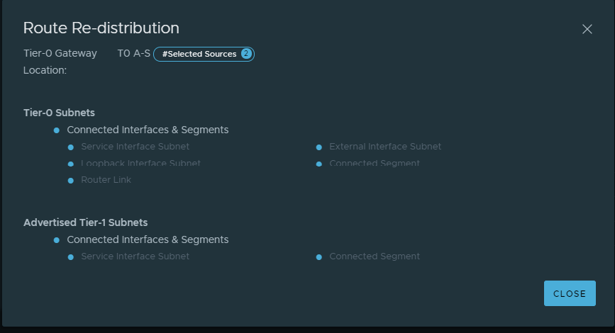 - Availability mode on Tier 0 Gateway is Active & Standby