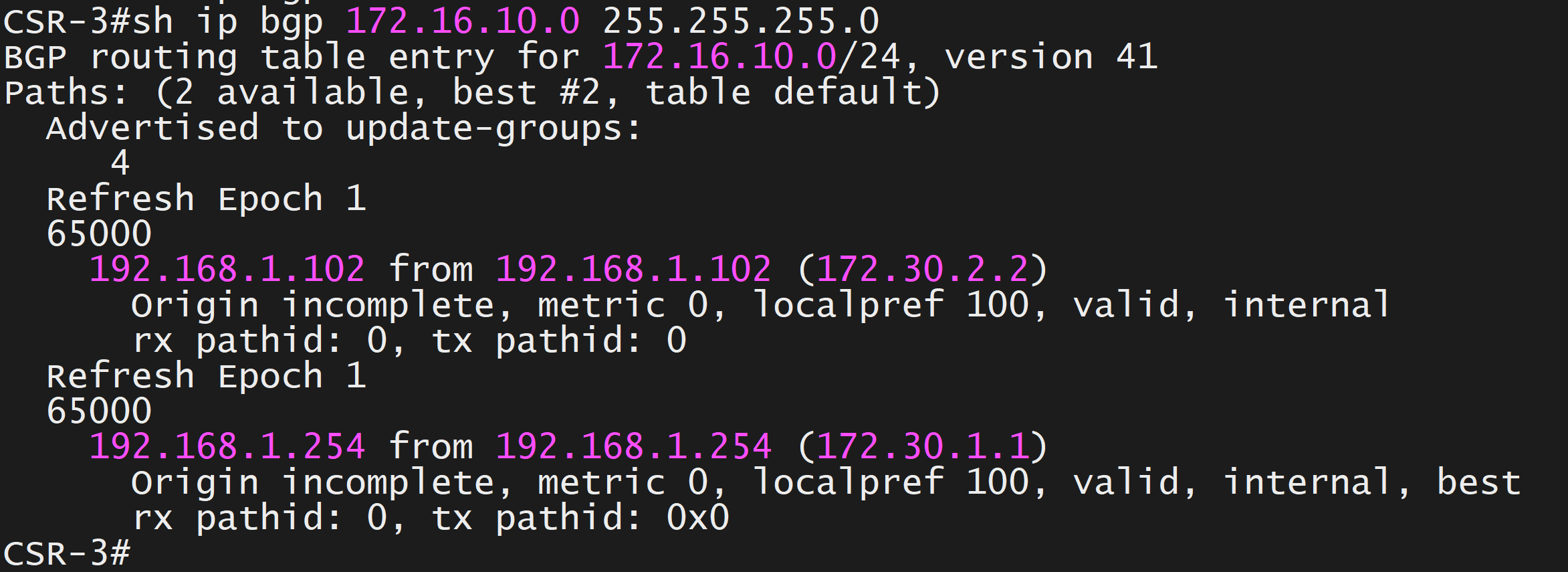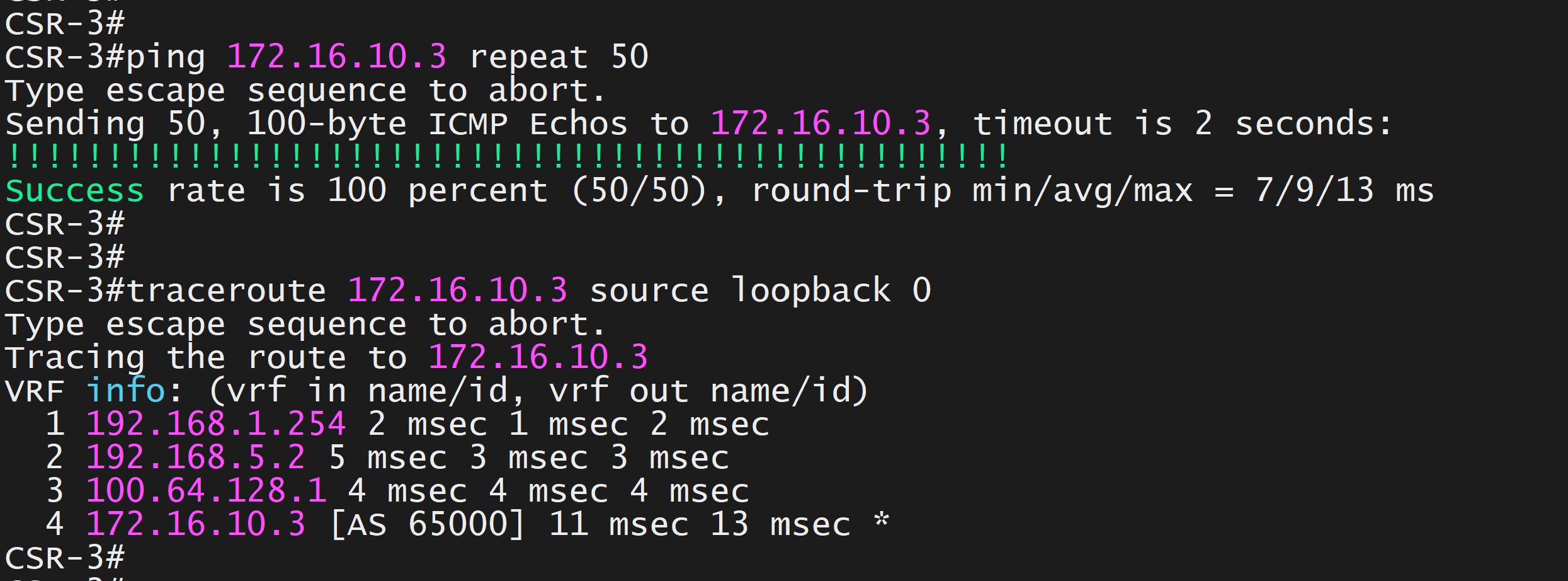 - Source addresses for BGP peering