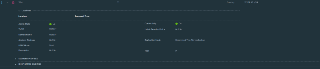 Next configure overlay network / segment which is attached to Tier 1 Gateway.