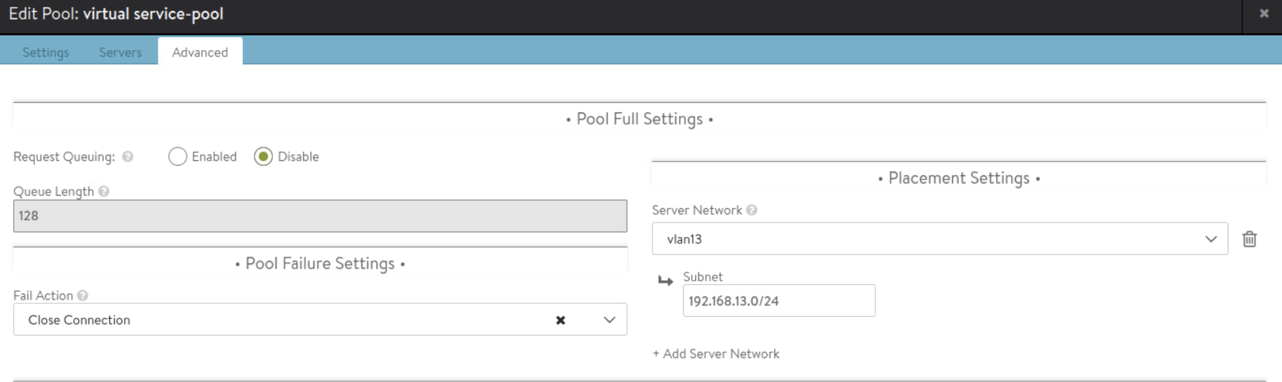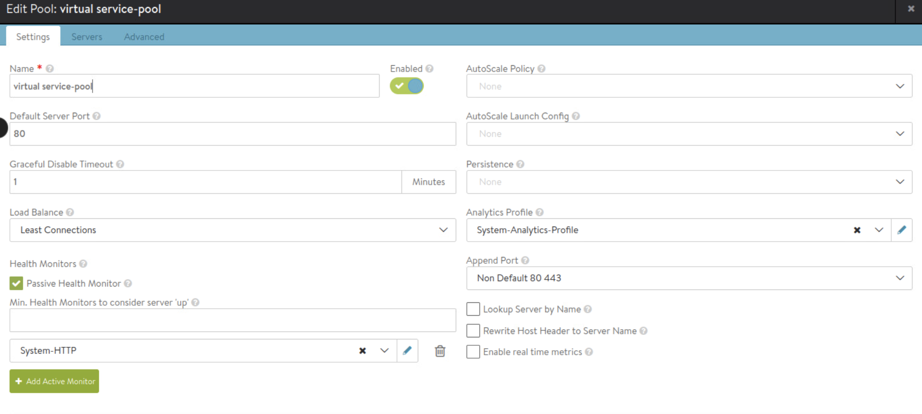 Create server pool while creating virtual service as shown below.