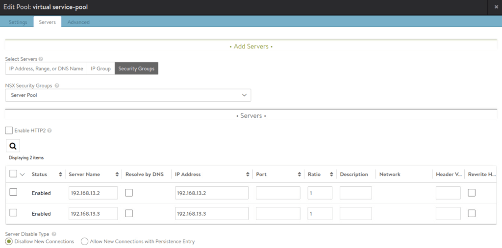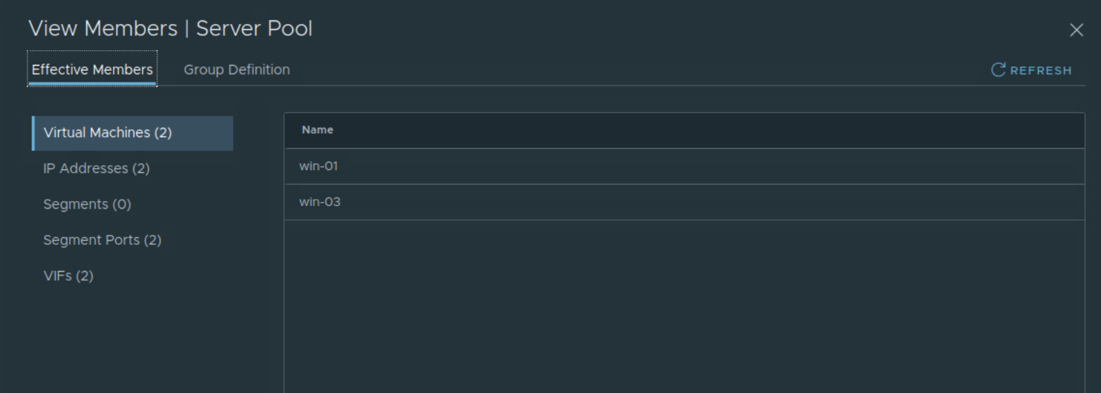 Server pool will use NSX-T security group as per below.