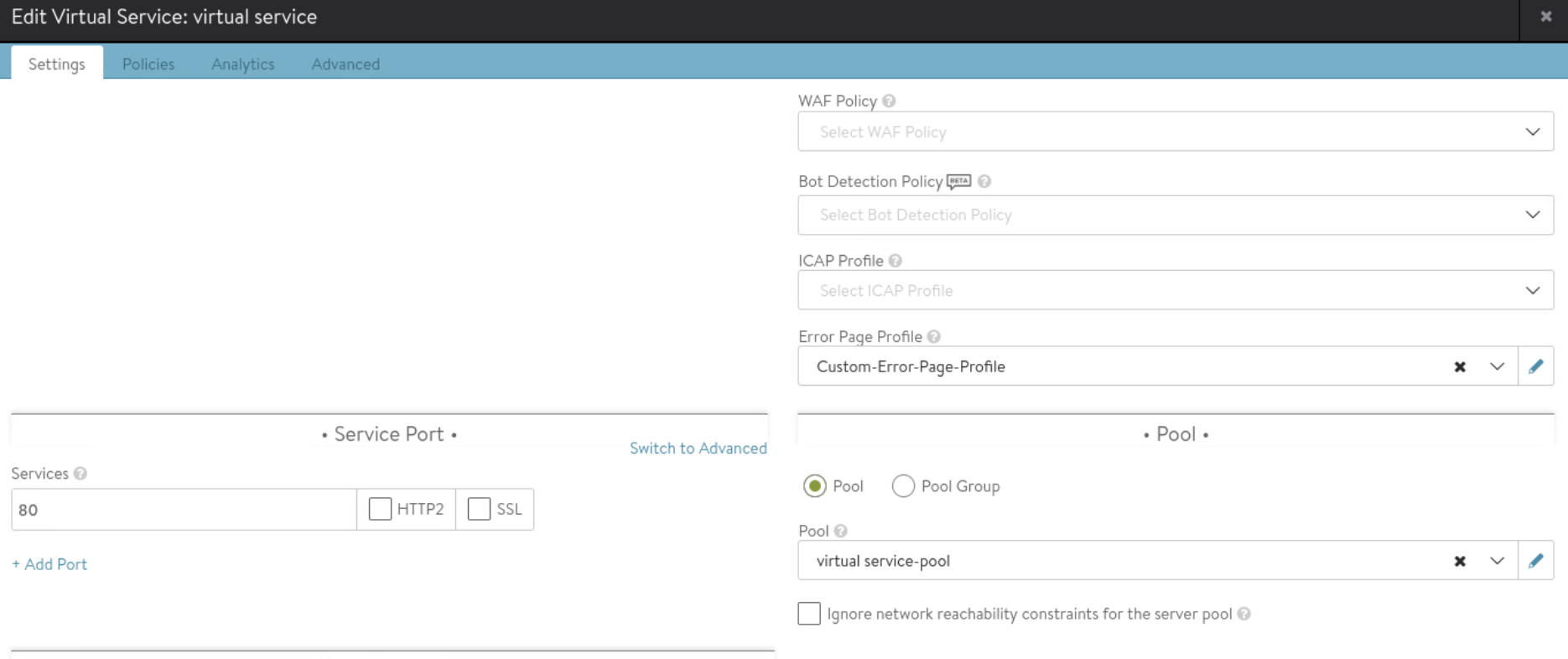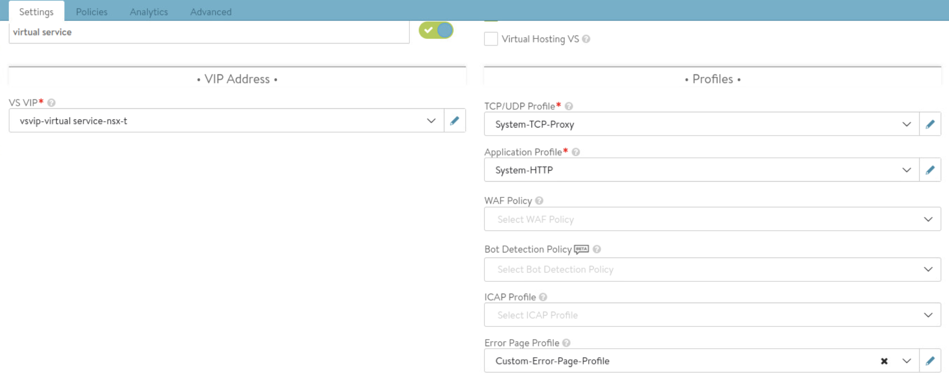 Continue with Virtual Service configuration: