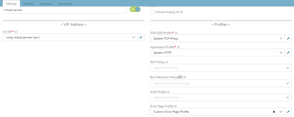 I will now create virtual service which will then trigger deployment of service engines based on the settings configured in SE group.