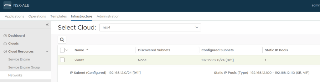 Management interface of NSX ALB service engines will be connected to NSX VLAN Segment with VLAN ID 12