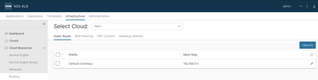Next execute below commands on NSX ALB Controller to configure default route in management vrf of NSX-T cloud