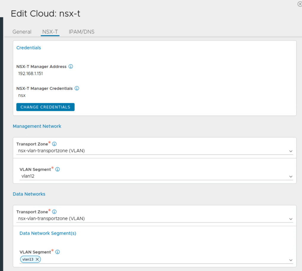 The networks are created from NSX as NSX VLAN segments.