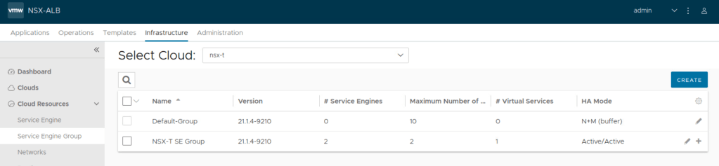 One key benefit of creating NSX-T cloud on NSX ALB is that life-cycle management of service engines is handled by ALB Controller; service engines are auto deployed once virtual service is created. Also NSX-T security groups can be used for server pool configuration on NSX ALB. Once NSX-T cloud is created on ALB, controller by itself will upload SE image to content library of vcenter server.
