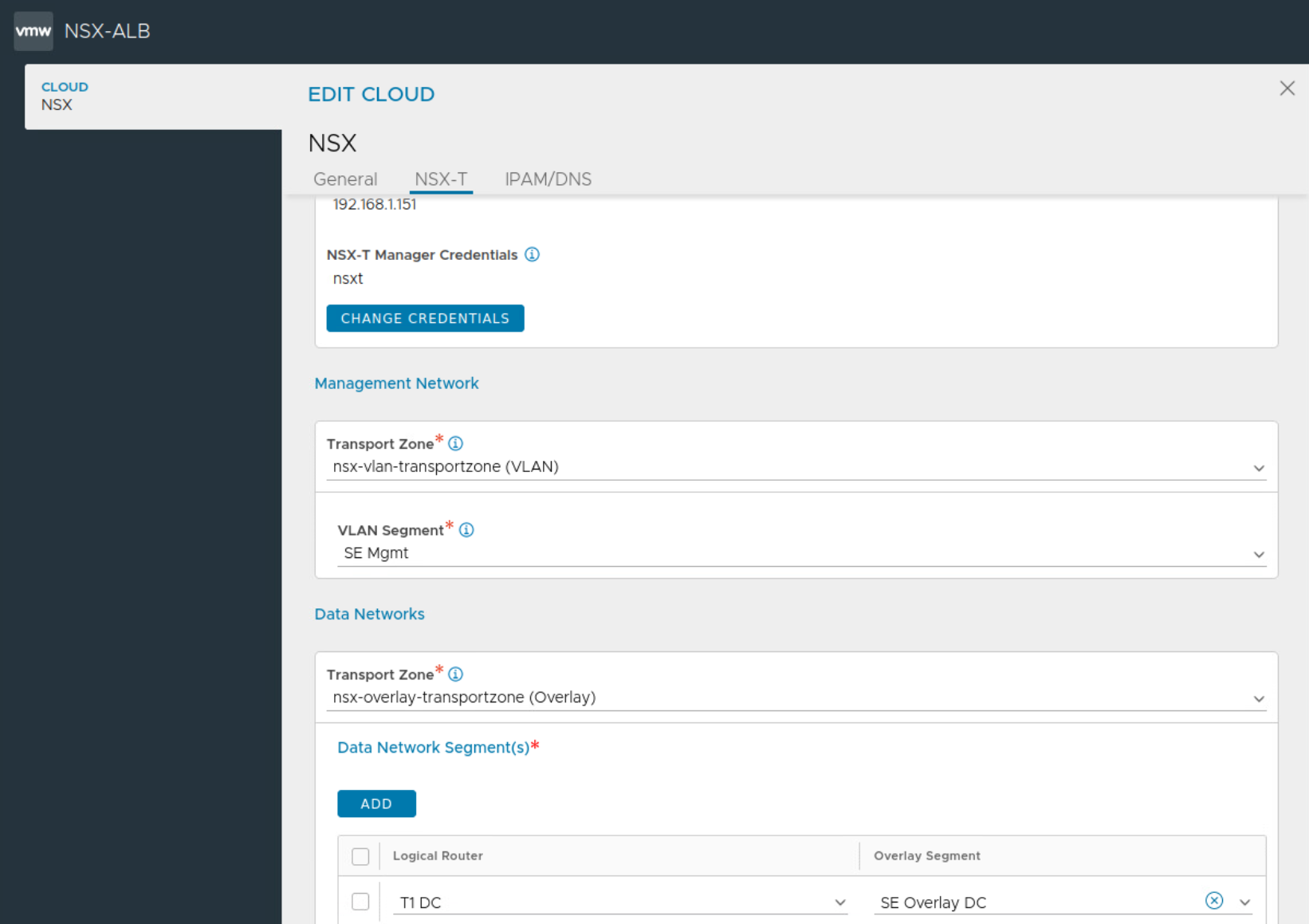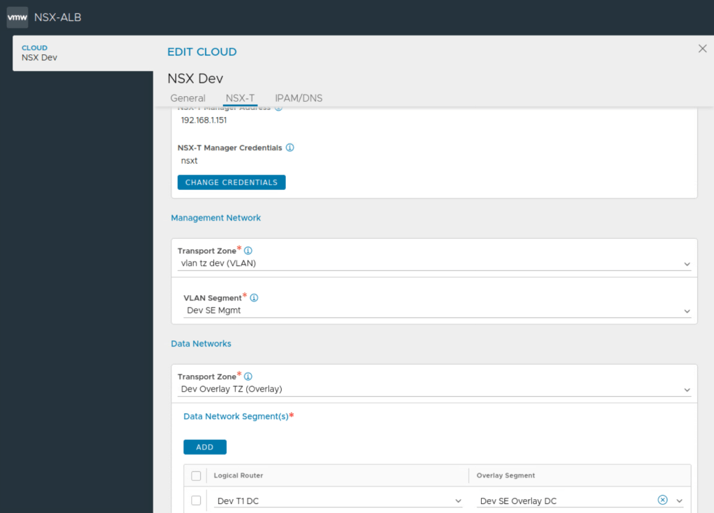 We’ll begin by creating the two NSX-T Clouds on NSX ALB