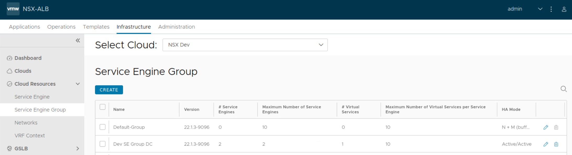 Service Engines are created within a group, which contains the definition of how the SEs should be sized, placed, and made highly available. Each cloud will have at least one SE group. And multiple SE groups may exist within a cloud. One should note that SE group is selected while configuring virtual service alongside other required parameters such as server pool. This will place the virtual service on that specific service engine group.