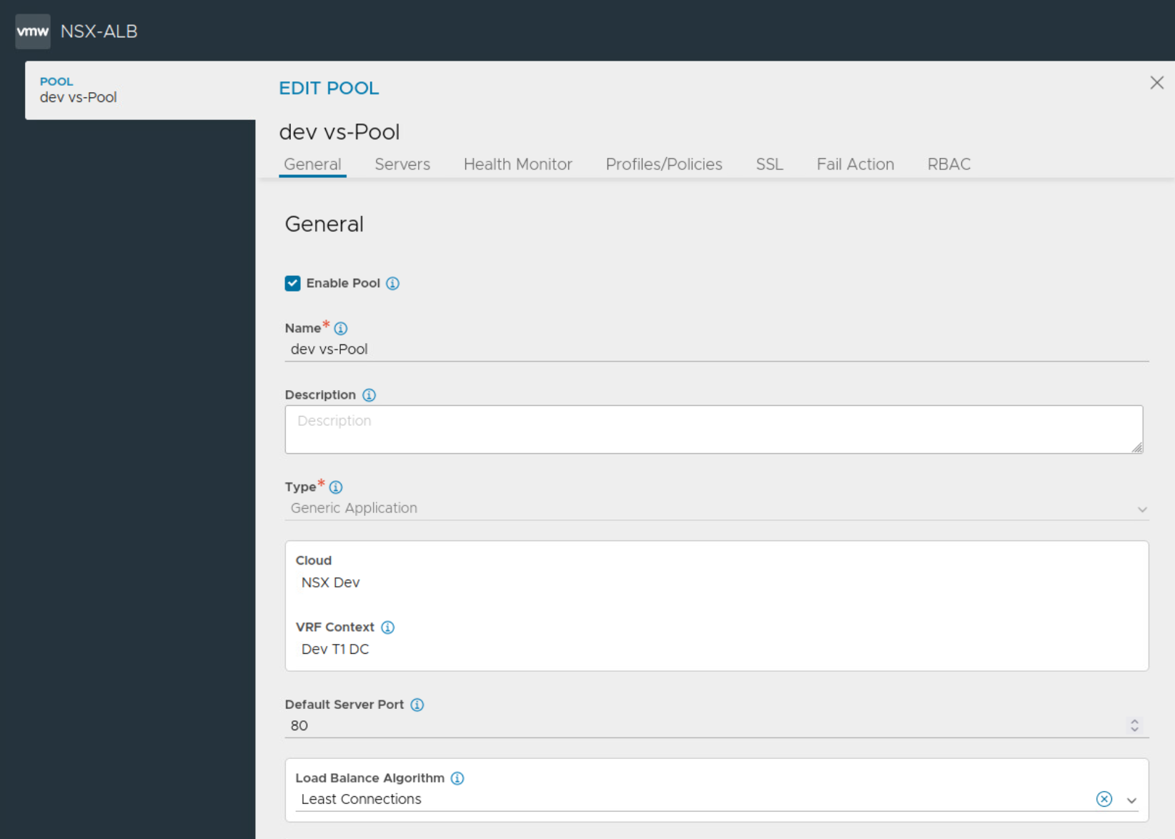 Notice the selection of Tier 1 Gateway during the configuration of server pool.