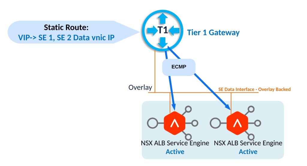 This design places data vnics of service engines on a dedicated overlay segment as shown above.