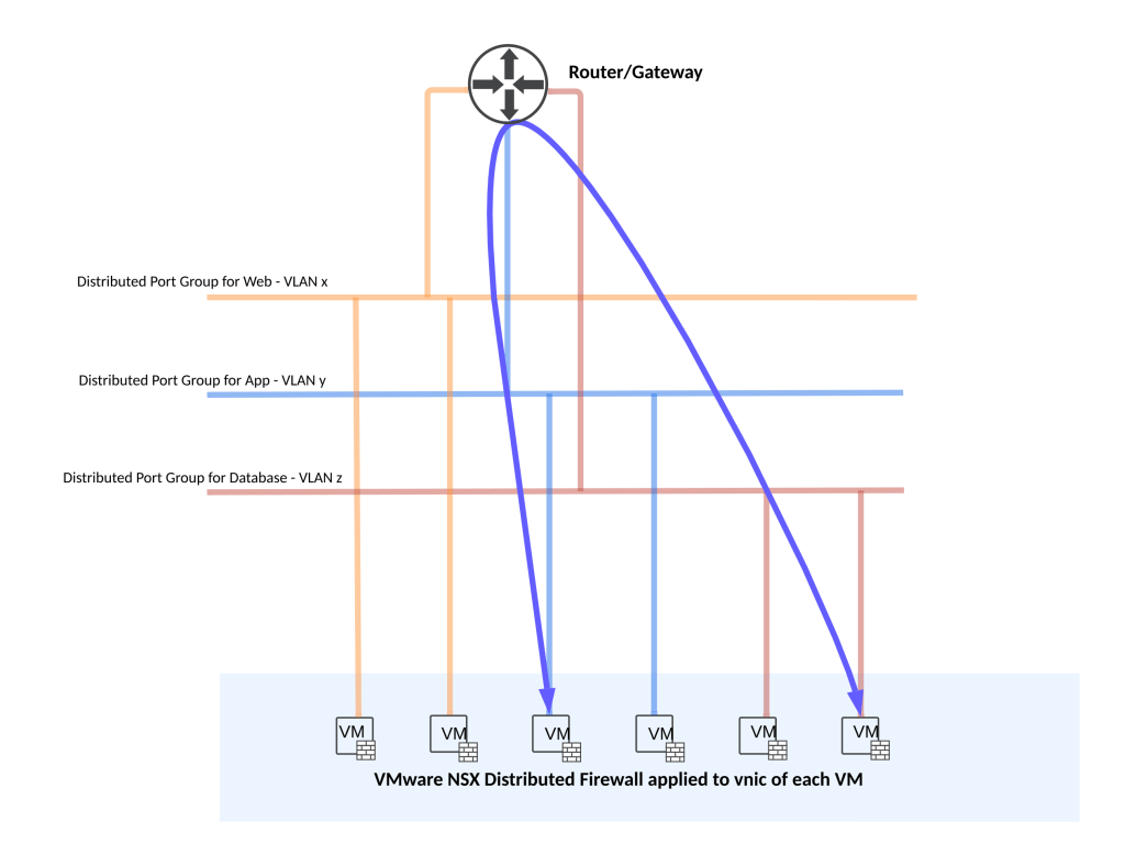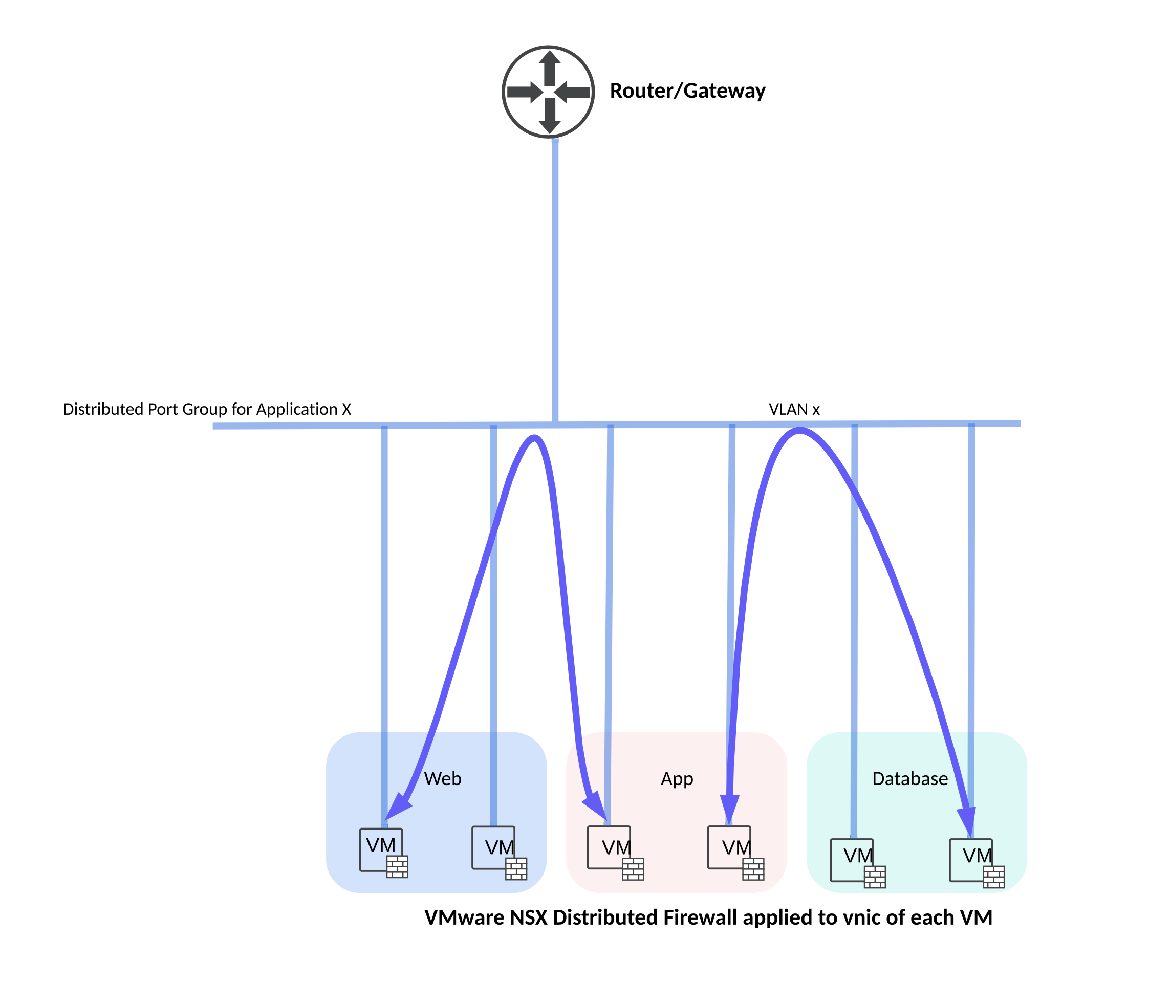I’ve also added below figures which show two potential ways of subnetting for your application considering NSX DFW is always fire-walling at vnic level.