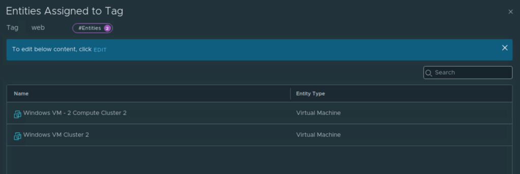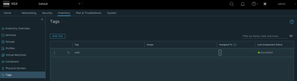 Next I will configure NSX tag and assign this NSX tag to the two test VMs.